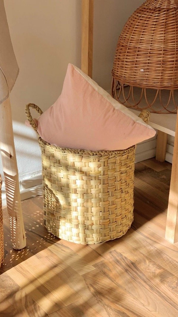 Realizado en fibra natural, este canasto es súper versátil, ideal para mantas, juguetes, plantas, etc.